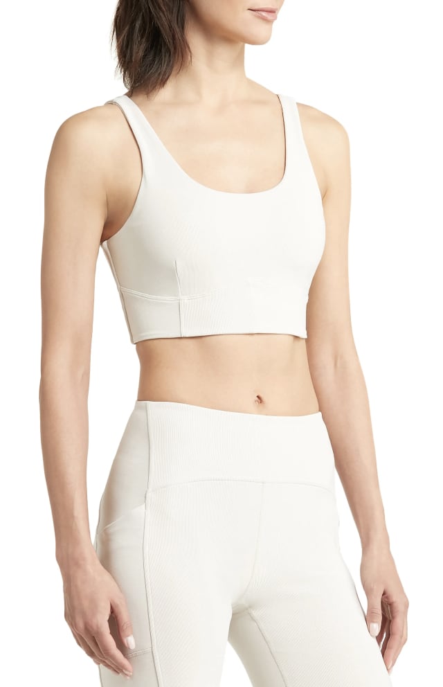 Work up a sweat in this ribbed bra with an extra wide underbust band and vertical seams for extra support.